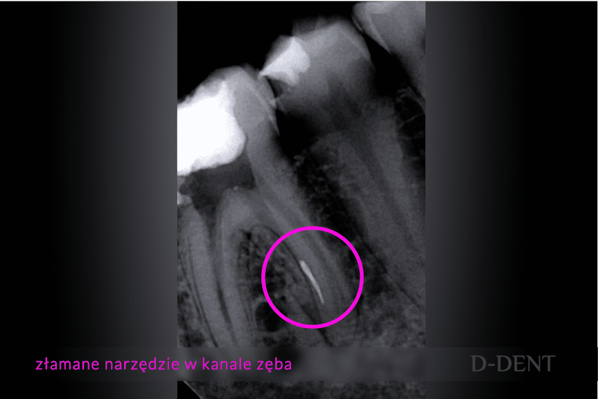 Chciałbym dodać, że usuwanie złamanego narzędzia może przebiegać w różny sposób. Wszystko zależy od danego przypadku. Takie kluczowe elementy, mające wpływ na przebieg zabiegu to: budowa anatomiczna zęba, miejsce utknięcia narzędzia oraz wielkość i rodzaj złamanego narzędzia.